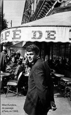 A milé překvapení, podívejte, co jsem našla. Milan Kundera před Café de Flore v roce 1969