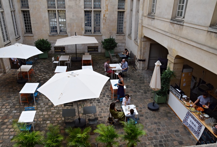 Na nádvoří, kam je vidět z i z oken nejvyššího patra, se letos v létě, ale výhradně jen o víkendech, usídlila kavárna. Na posezení je skvělá, ale káva, nerada to říkám, káva byla snad ta nejhorší, co jsem kdy pila. Cokoliv jiného si tady můžete vždy dát až do poloviny října.