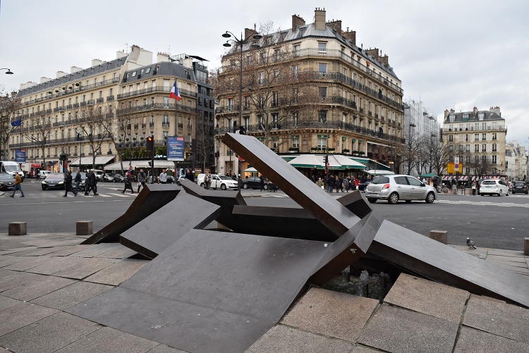 Z chodníku se tady zvedá dlažba a přechází do železných desek, které vytvářejí umělou přehradu. Takovou, jako vytváří na jaře tající ledové kry v řekách, když ucpou koryto. Přesně tak se také dílo jmenuje – Ledová zácpa. Jeho autorem je kanadský sochař Charles Daudelin. Dílo Paříži darovala quebecká vláda v roce 1984 (a nechala ho zrestaurovat v roce 2011 při příležitosti oslav 50. výročí od otevření quebeckého zastoupení v Paříži).