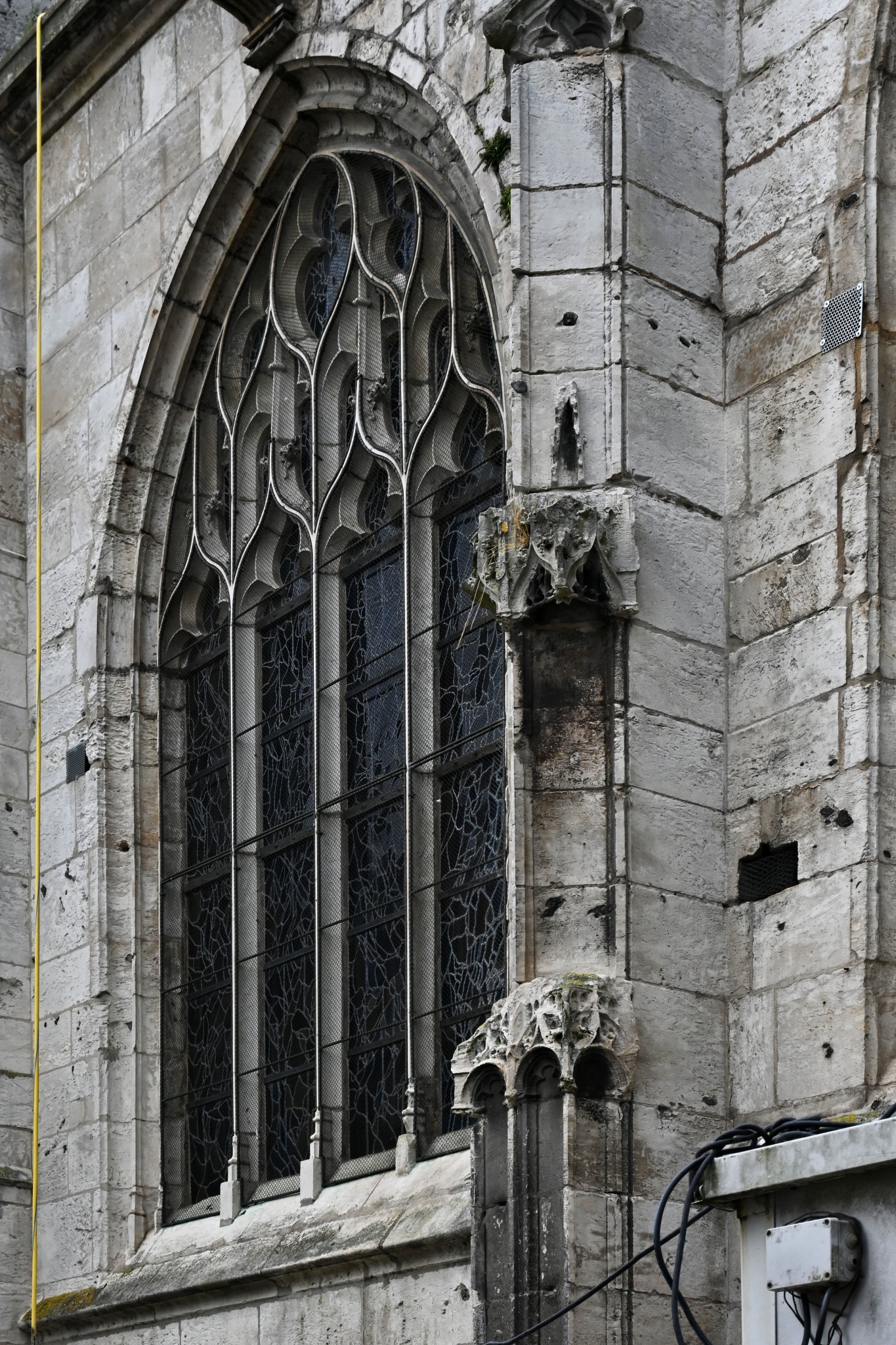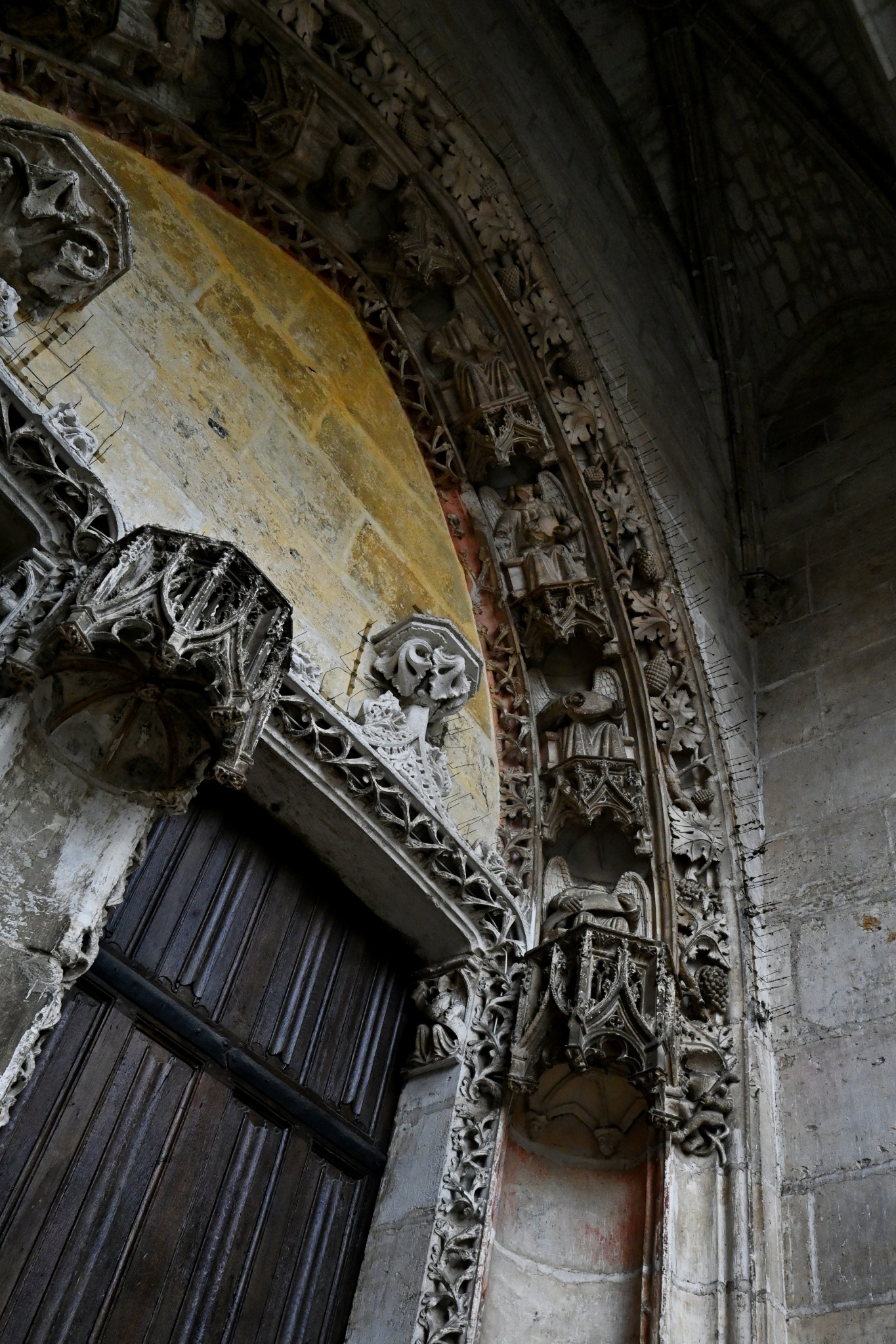 Průčelí chrámu s rozetou nad hlavním vchodem bylo vytvořeno ve 14. století. Sochařská výzdoba na průčelí byla poškozena v době Francouzské revoluce, kdy podle svého zvyku revolucionáři všem svatým odsekali hlavy. Chrám čekal na svoji opravu několik století a při bližším pohledu je to na něm vidět. Kamenné zdi jsou nejen mechanicky poškozené, ale také místy zvětralé a opotřebené, obrostlé mechem a plné skvrn od dešťové vody. To vše mu ale vůbec neubírá na majestátnosti a důstojnosti.