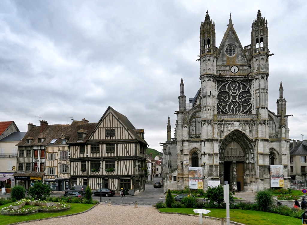 Stejně jako v mnoha dalších malých francouzských městech, i tady, v městečku s dvaceti třemi tisíci obyvatel, vás překvapí středověký chrám. Ten ve Vernonu je kapitulou, zasvěcenou Panně Marii, a pochází z doby mezi 11. a 16. stoletím. Jeho nejstarší část, tj. chór a chórový ochoz, jsou románské, zatímco další části zahrnují ranou, vrcholnou i pozdní gotiku. V současné době je její střední část i s věží nad transeptem pod lešením kvůli probíhající první fázi restaurátorských prací.
