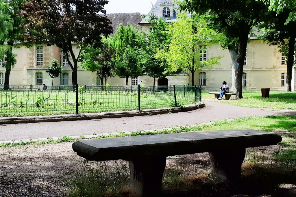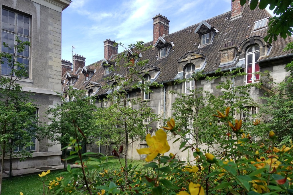 Už v tom starém článku se zmiňuji o tom, že nemocnici založil král Jindřich IV. na samém začátku 17. století. Není proto divu, že její staré jádro připomíná jedno z nejkrásnějších pařížských královských náměstí – place des Vosges. Budovy jsou dnes kulturní památkou a park je skutečnou oázou, na jejíž klid a stinné kouty ovšem navazuje areál nové moderní části nemocnice.