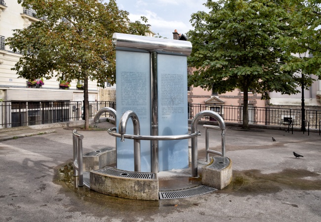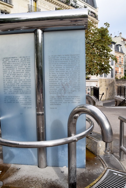 Artézský vrt zde sahá až do hloubky 582 metrů. Práce na něm byly zahájeny v roce 1863, ale o devět let později byly přerušeny a dokončeny byly až v roce 1924. Dnešní nová fontána, ze které si mohou lidé čerpat čistou pitnou vodu, byla naistalována při rekonstrukci náměstí v roce 1999. Mimochodem, úplně stejně vypadá i druhá fontána v 18. obvodu, zatímco ta v 16. obvodu má podobu klasické kamenné fontány.