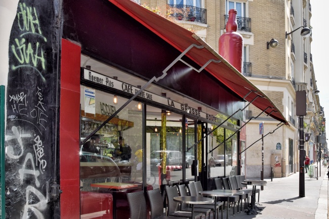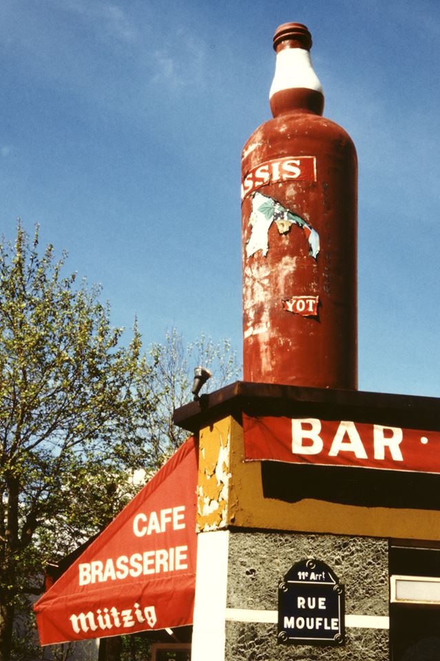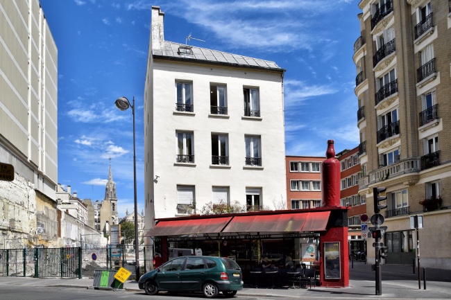 Samozřejmě mi nejde jen o to, ukázat vám nový park s trávníkem, záhony, dětskými hřišti, sdílenou zahradou a terénem na pétanque. Jako vždy je za tím vším i zajímavá a tak trochu dojemná historka, která vzbudila mezi obyvateli čtvrtě velký rozruch. Její pozůstatky vidíme při pohledu na park z bulváru Richard Lenoir. Parčík totiž začíná nelogicky podivnou trojúhelníkovou betonovou deskou. Je to zachovalá připomínka slavného bistra s hotelem, který tu stával a který byl známý díky ohromné reklamní láhvi na střeše. Podle ní se mu říkalo „La grosse bouteille“, my bychom řekli asi Velká flaška.