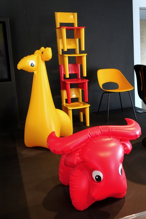 V oddělení moderního designu na vás najednou zasvítí jasné barvy hraček, které všichni známe – oblíbený buvol a žirafa české návrhářky Libuše Niklové z roku 1974. Jednu dobu je za poměrně vysokou cenu prodávali i v muzejním obchodu se suvenýry.