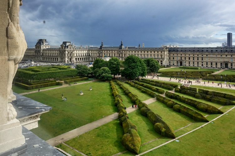 Muzeum s náplní podobnou, jako má naše Uměleckoprůmyslové muzeum, najdete v severním křídle Louvru, v části, která leží podél rue de Rivoli a končí vysokým ozdobným pavilonem Marsan s výhledem do zahrady Tuileries. Na opačné, jižní straně zahrady podél Seiny leží úplně stejné křídlo se stejným pavilonem, pojmenovaným po bohyni Floře. Obě nárožní budovy byly v minulosti spojeny palácem Tuileries, o kterém jsem se letmo zmínila nedávno v článku o ministerstvu školství. Když palác v roce 1871 vyhořel, padl s ním i nárožní pavilon u rue de Rivoli, pojmenovaný po bohyni Pomoně. Na rozdíl od paláce Tuileries byl však tento pavilon obnoven, a to přesně podle protějšího Pavillonu de Flore a poté, co byl prakticky znovu postaven, byl spolu s celým křídlem pojmenován po komtese de Marsan, dceři prince Rohan-Soubise, která mívala v této části Louvru svoje pokoje, když byla guvernantkou královských dětí Ludvíka XVI. a Ludvíka XVIII.