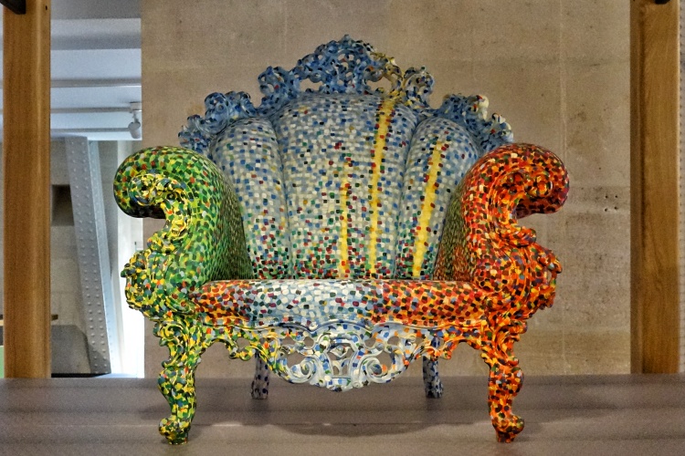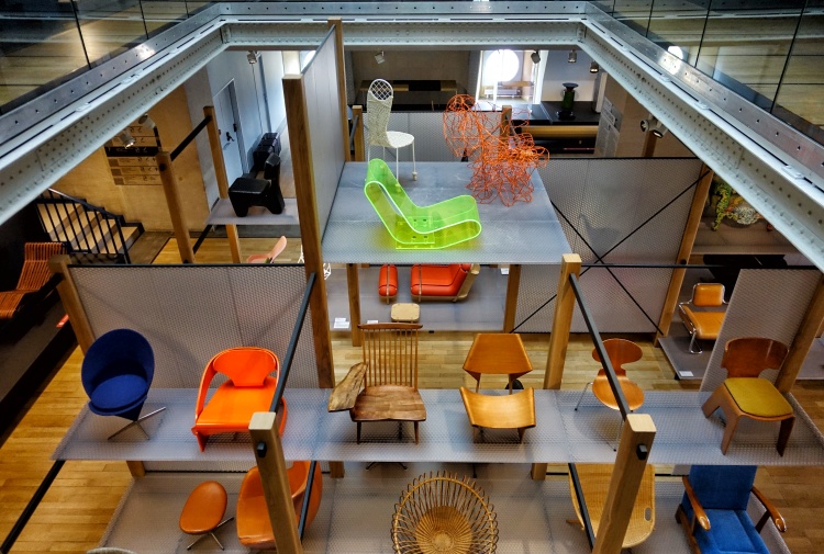 V expozici, věnované modernímu nábytku, najdeme snad všechny nejznámější návrháře, počínaje Le Corbusierem s jeho nábytkem z rezidence Cité radieuse v Marseille (vlevo), přes klasické a ikonické návrhy dodnes prodávaného designového nábytku, až po extravagantní kusy, jako je například křeslo Poltrona di Proust od Alessandra Mendiniho (vpravo).