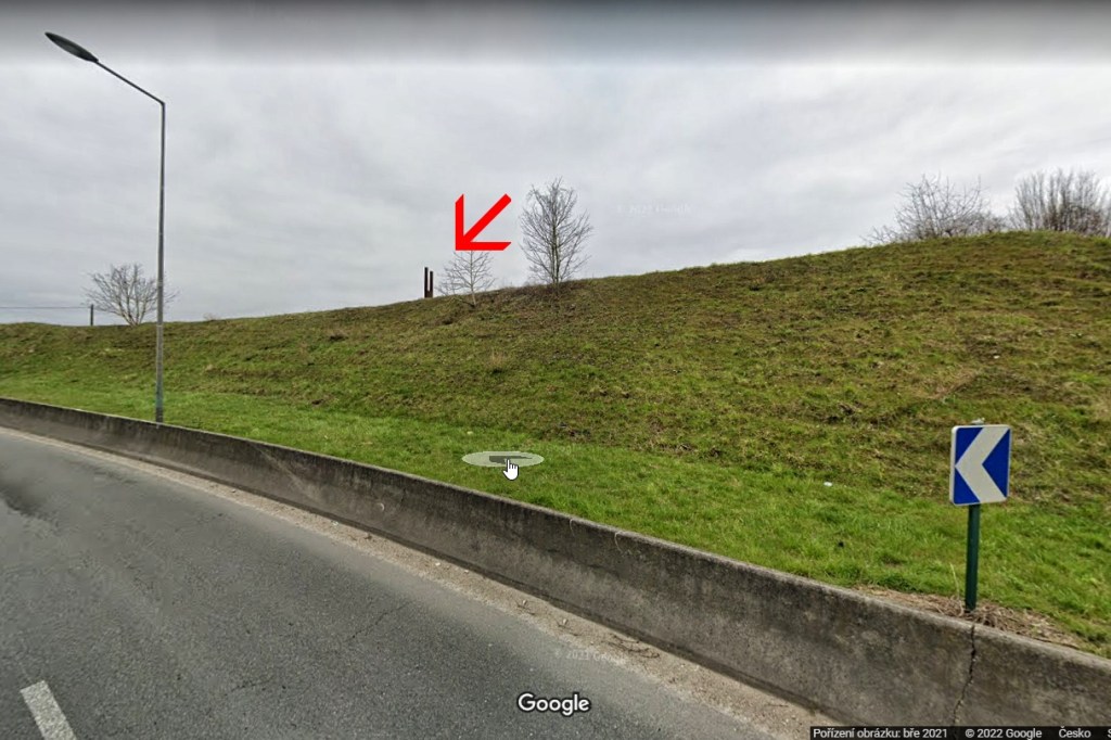 Jedenácté zastavení, u kterého celá trasa končí, mi mezi mými fotkami chybí. Prostě jsem až tam nedošla. Leží až za umělým jezerem u silničního přivaděče u vesnice Ham, kde stojí na nízkém kopečku kovová deska s výřezem. Podle Google map to vypadá takhle.