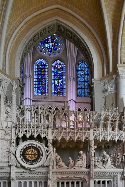 Šest metrů vysoká chórová přepážka odděluje oltář od chórového ochozu. Pochází ze 16. století a vyznačuje se gotickým stylem, ovlivněným ovšem už renesancí. Nejpozoruhodnější jsou zde astronomické hodiny a čtyřicet výklenků se sádrovými výjevy ze života Marie a Ježíše.