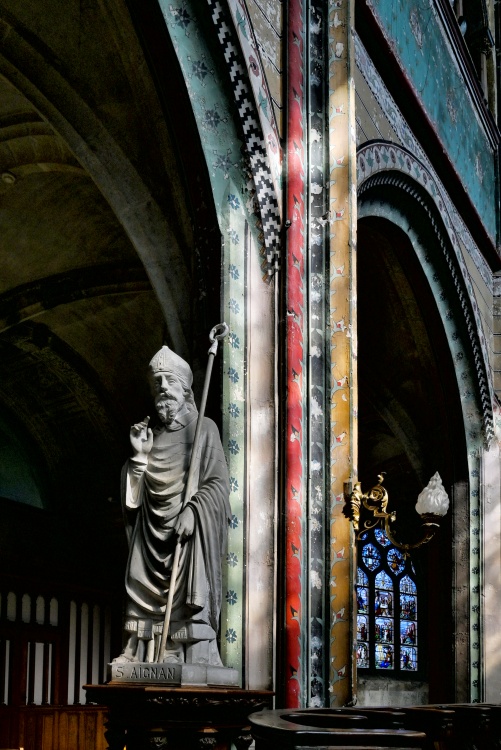 Starými spletitými uličkami se dostaneme také na malé uzavřené náměstí place Saint-Aignan, kde stojí stejnojmenný kostel. Je to nejstarší farní kostel ve městě, založený kolem roku 400 biskupem Aignanem, který zde byl později pohřben a jemuž byl po jeho svatořečení zasvěcen. Šlo samozřejmě o původní stavbu, z níž dnes nezbylo vůbec nic. Dnešní stavba pochází ze 16. století a vedlejší věž, která je s kostelem spojena obloukem, až ze 17. století. Ani tento kostel neunikl revolucionářům, kteří ho proměnili na vězení a později prodali jednomu z měšťanů, který si v něm zřídil sklad sena pro koně. V době Restaurace po roce 1822 byl navrácen církvi, ale zrenovování do přibližně původního stavu se dočkal až v roce 1869.