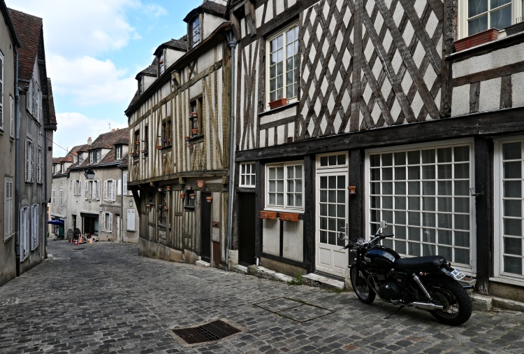 Ze všech dalších zajímavostí, kterých je v Chartres opravdu požehnaně, mě zde bavily asi nejvíc staré uličky s hrázděnými domy za katedrálou ve svahu, který se mírně svažuje až k bývalé městské bráně na břehu řeky Eure. Cestou potkáme několik nefalšovaných zbytků pozdního středověku, jako například vpravo dole tak zvané schodiště královny Berthy, pocházející podle legendy z domu vdovy vévody z Chartres a poté manželky kapetovského krále Roberta Zbožného. (Časově to sice nesedí, ale legenda je holt legenda). Schodiště je dnes začleněno do novějšího hrázděného domu, který je běžně obydlený.