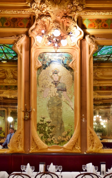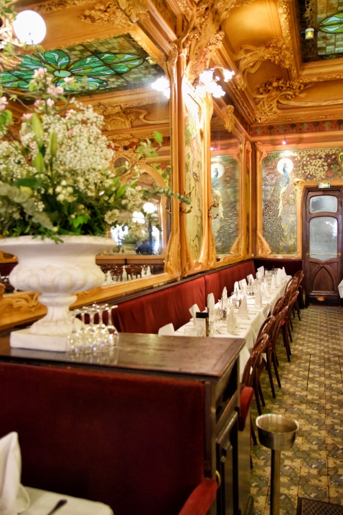 Pokud se mě zeptáte na kuchyni, tak upřímně – nevím. Restaurace se v posledních letech přizpůsobila očekávání hostů „bouillonu“ a místo ústřic a foie gras zde najdete spíš pečená kuřata, choucroute, hovězí líčka nebo telecí hlavu. Ceny jsou velmi slušné, na to, jaká krása se tady předvádí. Na jídlo bych proto nijak zvlášť nesázela, ale interiér za to rozhodně stojí.