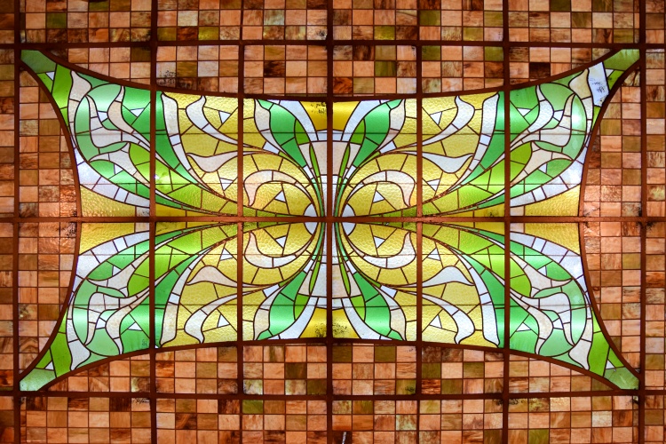 Dekorace interiéru jsou sice dílem nejlepších řemeslníků své doby, ale pro nás má jejich krása trochu hořkou příchuť. Tak schválně – taky byste řekli, že je to Alfons Mucha? Jeho styl, jeho vzory, jeho panó a jeho Médea?