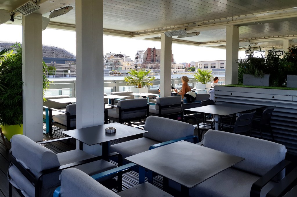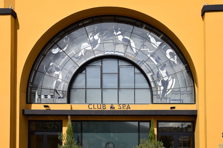 Vstup do klubu a spa, umístěný z boční strany, byl proveden věrně podle původní předlohy ve stylu art-déco. Hned vedle něj najdeme výtah na terasu. Na rozdíl od bazénu a lázní, kam mají přístup jen hoteloví hosté a členové klubu, je jak spodní kavárna u bazénu, tak i kavárna na střeše volně přístupná pro veřejnost. Káva zde sice stojí skoro dvakrát tolik než jinde, ale za ten výhled to stojí.