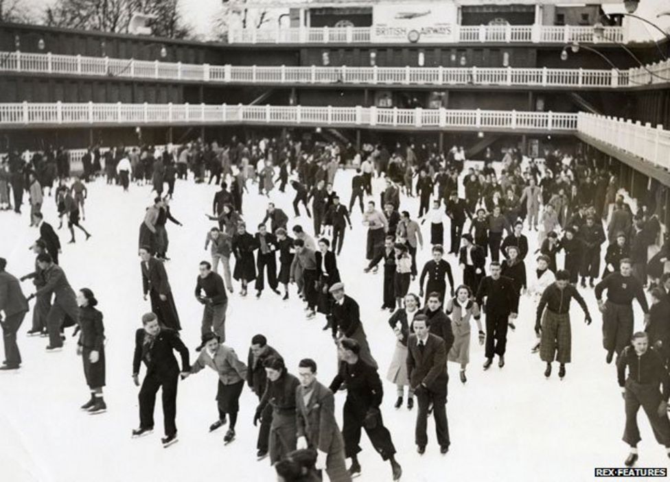 Plovárna v době své největší slávy. Vlevo venkovní bazén v létě a vpravo v zimě jako kluziště. Foto cntraveler.com