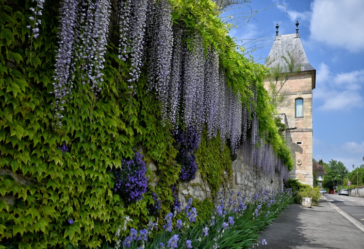 Část Médanu tady byla už v článku o domu Émila Zoly, ale městečko je tak půvabné, že by byla škoda omezit se jen na dům slavného spisovatele a neprohlédnout si ho celé. Leží na severozápad od Paříže, kde tok Seiny vytváří tři mohutné zákruty, které se v oblouku mezi kopci zařezávají do krajiny. Od levého břehu řeky se tady prudce zvedá svah, ve kterém stojí hezké staré vilky a rodinné domy. Zatímco Zolův dům stojí téměř až u řeky, o něco výš ve svahu se nad ním tyčí čtyřhranné věže místního zámku, v této roční době ponořené do modři vistárií, kosatců, plaménků a zvonků.