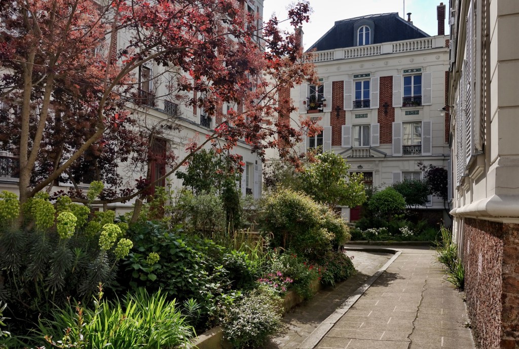 Kolem nové rue du Jourdain vyrostly po roce 1885 nové domy, z nichž číslo 10 se svojí velkou rozlohou stojí přímo v místech bývalé radnice. Nejde však jen o honosný dům zvenčí – ve svých útrobách skrývá rozkvetlý dvůr se dvěma řadami roztomilých starých domů, na které se dnes půjdeme podívat.