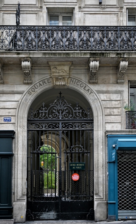 Cité Lemercier není jediným zeleným zázrakem v rušné čtvrti. Podobných uliček a dvorů je tady víc a určitě na některé sami narazíte. Ta, která se zdá nejnepřístupnější, se jmenuje Square Nicolaÿ. Má dva vchody – jeden z čísla 77 bis v rue Legendre, druhý z čísla 16 rue des Moines. Má ale taky obrovskou ceduli se zákazem vstupu veřejnsoti, takže jsem si řekla, ať si to nechají a ani jsem se tam nepokusila dostat. Zatím. Dovnitř se však dá podívat aspoň přes mříže.