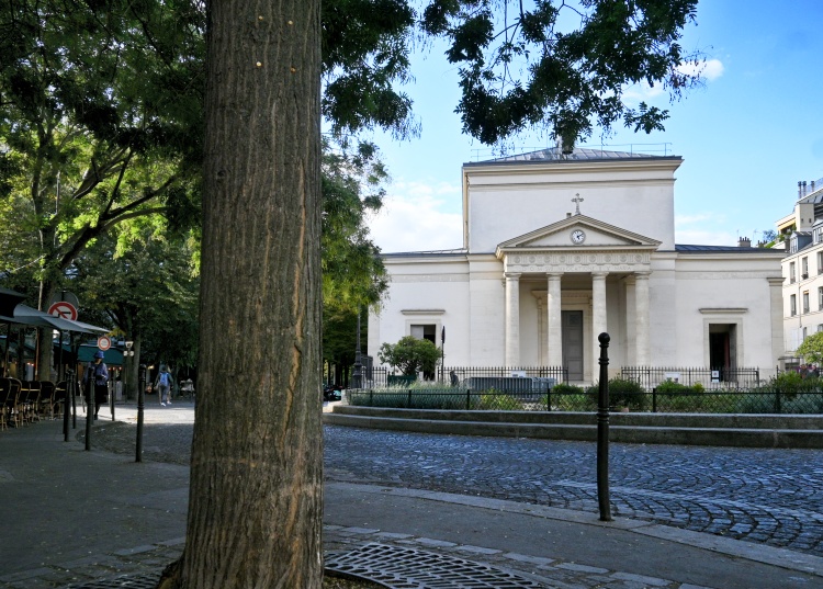 Na náměstí před kostelem a na pěší zóně po jeho levé straně samozřejmě nechybí kavárny, to bychom jinak nesměli být v Paříži. Mám to tady moc ráda a kdykoliv jsem někde v okolí, vždycky si přes náměstí a přilehlý park aspoň projdu.