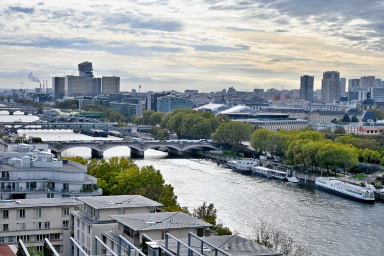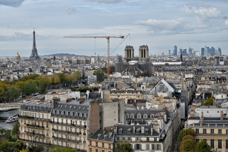 Pohled z výšky je z tohoto nezvyklého úhlu opravdu ohromující. Zabírá kolem dokola celých 360°, takže vidíte nejen Eiffelovku, ale i celé blízké centrum se všemi památkami, zvonice mnoha kostelů, ale taky věžáky v la Défense, nový Justiční palác, o něco severněji pak Montmartre s kostelem Sacré-Coeur, nedaleké náměstí Bastille, na východě na obzoru věžáky v nově budované čtvrti ve 13. obvodu kolem knihovny François-Mitterrand a o něco jižněji věž Montparnasse, to vše na šedo-béžovém pozadí pařížských střech a domů.
