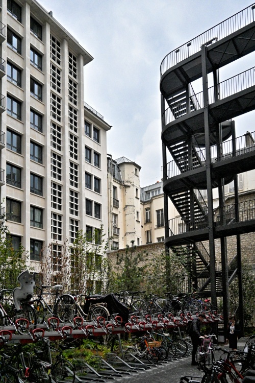 Restaurace sídlí v budově, jejíž rekonstrukce právě skončila a při níž byla revitalizována stará administrativní budova ze 70. let, ve které dřív sídlila, kromě jiného, i pařížská prefektura. Nikdy jsem uvnitř nebyla, ten barák odpuzoval sám od sebe, pamatuji si jen děsivý průvan, který se honil přízemím, vyzdviženým na sloupech do úrovně prvního patra. Po rekonstrukci je průvan odstíněn tím, že byl volný přízemní prostor částečně zastavěn a částečně prosklen a pod „nohy“ budovy byl vestavěn skleněný modul, ve kterém je umístěná malá tržnice – stavba tak nabyla atraktivnosti i pro lidi z okolí a pro kolemjdoucí.