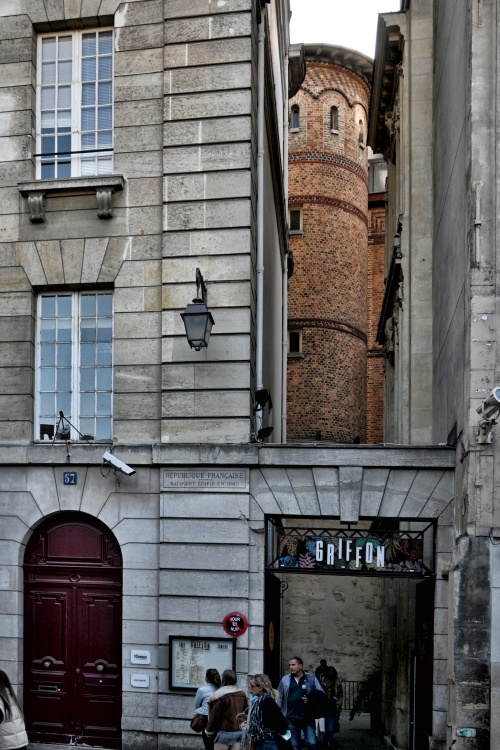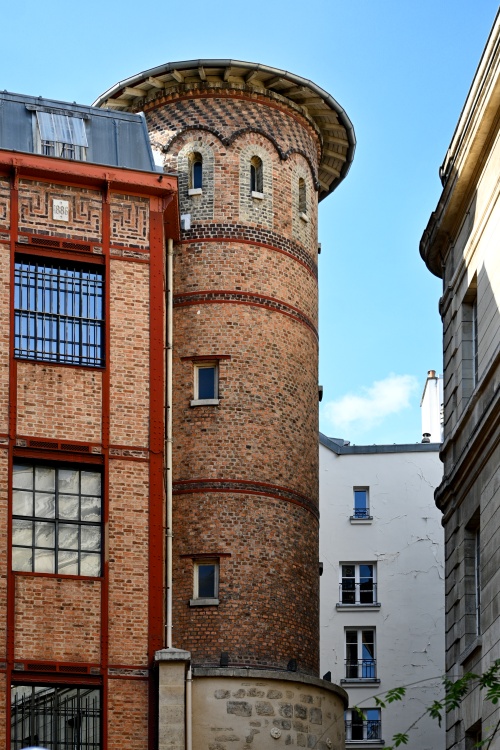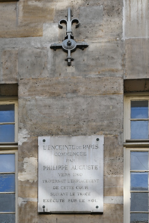 Druhou, tentokrát čistě historickou zajímavostí tohoto místa, je tabulka na zdi na nádvoří, která upozorňuje, že právě v těchto místech vedly v minulosti pařížské hradby. Postavil je mezi lety 1190 a 1220 král Philippe Auguste a zbořeny byly postupně až v průběhu 16. století. Jejich průběh je vyznačen i na zemi odlišnou dlažbou. Součástí hradeb byla také věž, jejíž pozůstatky najdeme na vedlejším nádvoří. Z té původní však zůstala jen nízká kamenná základna, zatímco cihlové dostavby pocházejí z roku 1886.