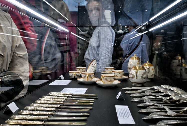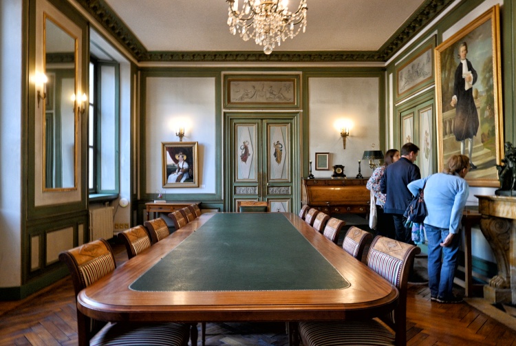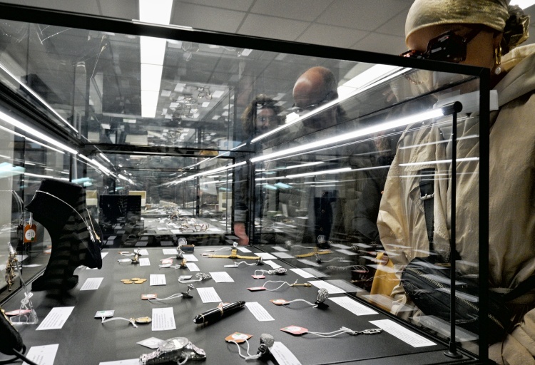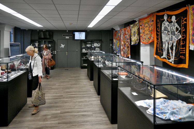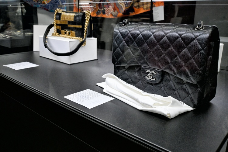 Tou nezajímavější místností je zde ovšem výstavní sál, kde bývají před dražbou vystaveny některé dražené předměty. Jak vidíte dole, na konci září se dražily především šperky a hodinky, stříbrné příbory a cenný porcelán, ale také hedvábné šátky (a boty) Hermès nebo kabelky Louis Vuitton a Chanel. Vyvolávací ceny byly hodně zajímavé (například šátky kolem 100 euro), ale věřím, že se při dražbě znásobily.