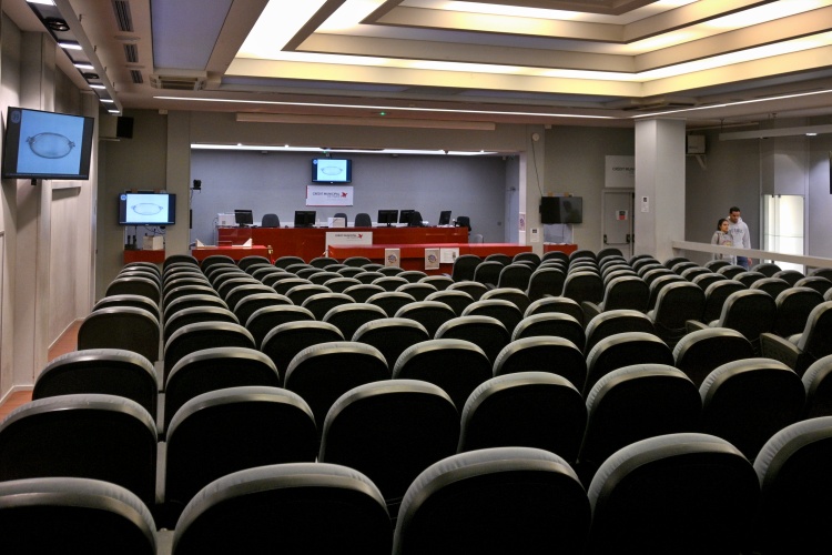 Na nádvoří se po překonání bezpečnostní kontroly vstupuje z ulice krátkým průjezdem, ze kterého vede po levé straně schodiště do sídla společnosti. V zasedací místnosti ředitelství je soustředěna malá výstavka uměleckých předmětů, které této instituci propadly v minulosti.