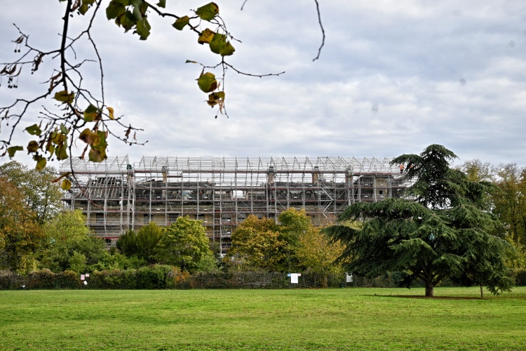 Ze zámku toho v současné době moc vidět není, je celý zakrytý lešením. Jak vypadal těsně před rekonstrukcí se můžete podívat TADY.