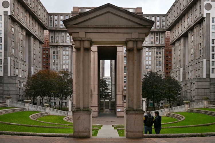 Projekt, situovaný na východ od Paříže v městě Noisy-le-Grand v oblasti Marne-La Vallée, vznikl na začátku 80. let, kdy místní radnice rozhodla, že místo administrativního komplexu, který měl i se zcela novou čtvrtí Mont d´Est tvořit protiváhu La Défense na opačném okraji města, zde raději postaví bytový komplex. Návrhem byl pověřen katalánský architekt Ricardo Bofill, jehož extravagantní styl se v té době v Paříži už zabydlel (o stavbách, které tam vytvořil, jsem psala článek přesně před rokem, kdy slavný architekt zemřel).