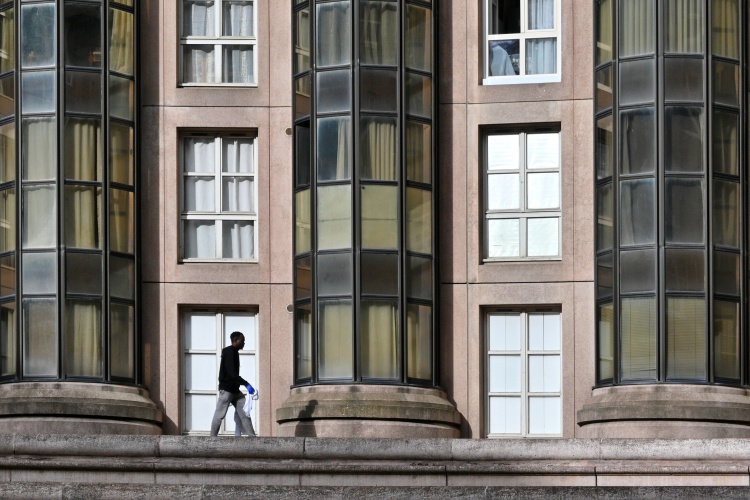 Pohled na amfiteátr, který byl kolem poledne úplně prázdný. Kromě dvou francouzských fotografů, dvou japonských blogerek, které se tu navzájem dlouho fotily, paní, která si sem přišla číst a černošského správce, který chodil kolem dokola s mohutnou lahví saponátu a leštil všechny skleněné vstupní dveře, tudy procházely jen skupinky dětí s aktovkami a sem tam někdo z obyvatel. Pod vlivem toho, co jsem předtím slyšela a četla, jsem si sice nejdřív hlídala ústupové cesty (a že jich tady moc není), ale neměla jsem při tom ani ten nejmenší pocit ohrožení.