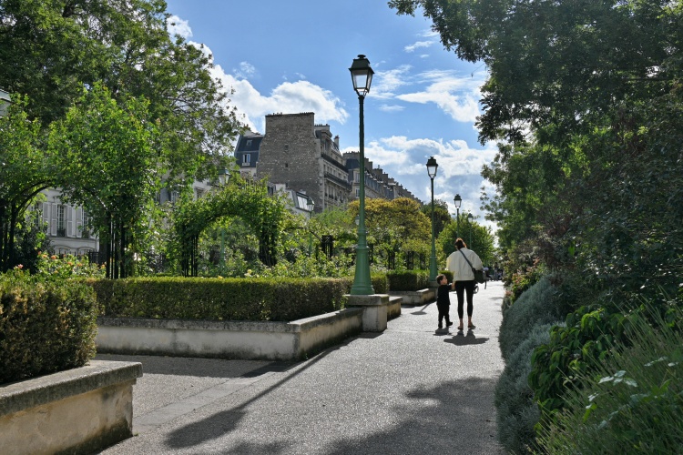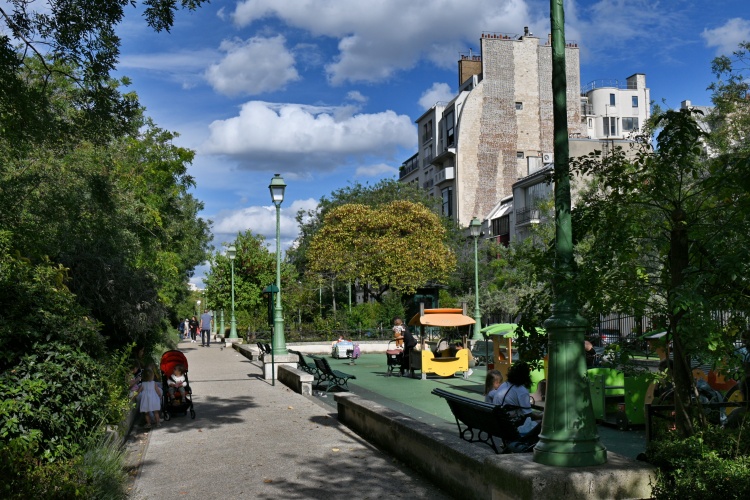 Při jihozápadní straně náměstí pak začíná povrchová část promenády Pereire. Brankou v plotě se dostaneme do světa pergol, porostlých pnoucími se růžemi a vistáriemi, se záhony levandule, pestrých květin a bylinek, ale také s dětskými hřišti, plochami na kolečkové brusle, pingpongovými stoly nebo tenisovými kurty, a také s malou komunitní zahradou.