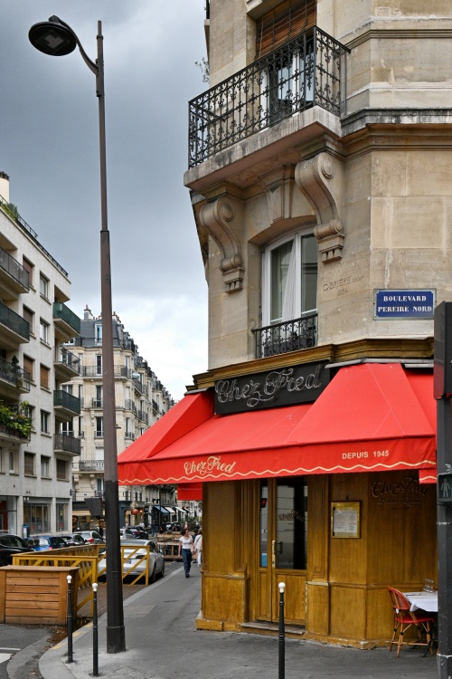 Dál je pak nutno pokračovat po povrchu podél plotu, kterým je na trať vidět. Obě strany boulevardu Pereire jsou lemovány hezkými domy, částečně z 19. století, částečně z přelomu a začátku 20. století, a sem tam i moderní zástavbou, která doplnila tu starou. Mezi modernější doby patří i předválečný dům číslo 56, na kterém nám pamětní deska připomene, že právě tady stával dům, ve kterém bydlela a zemřela slavná herečka Sarah Bernhardt.