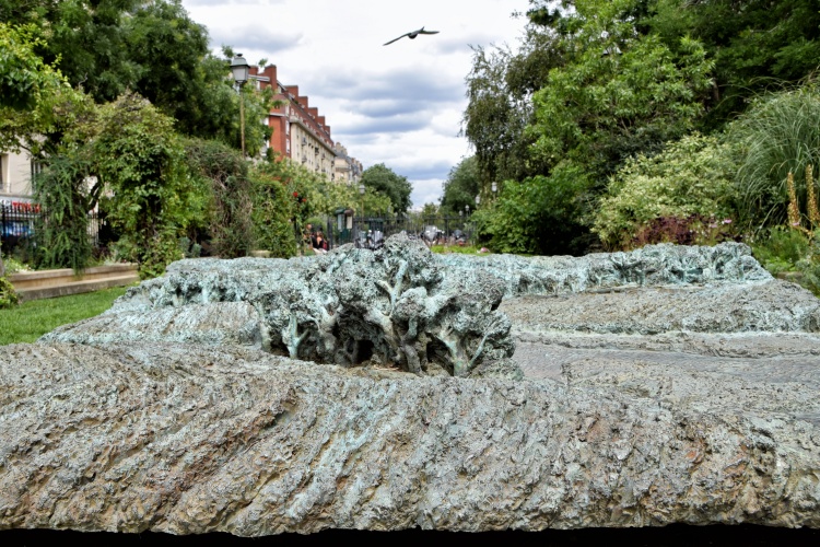 Opět se vrátíme na boulevard Pereire a pokračujeme promenádou dál. Kromě dalších hřišť a sportovišť stojí za povšimnutí ještě nízké bronzové plastiky, dnes silně pokryté měděnkou, které jsou rozmístěny po celé délce promenády. Jsou inspirovány přírodou a představují různé typy krajiny – pole, sady, řeky, moře, vinice nebo, jako v dole zobrazeném případě, olivové háje. Jejich autorem je Boris Lejeune, který je vytvořil v letech 1988 – 1990.