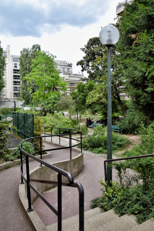 Pokud byste se na tuto procházku vydali, je dobré vědět, že asi po třech stech metrech uvidíte u mostu pod rue de Tocqueville na další schody, kterými se můžete dostat nahoru. Cesta příkopem však vede dál a pokud po ní budete pokračovat, narazíte před mostem pod rue Alphonse de Neuville na plot napříč cestou. Konec, dál to nevede, žádné schody nahoru, na které čekáte a s kterými počítáte, tady nejsou. Přímo před plotem je na zdi vybudovaná lezecká stěna a je tu i dětské hřiště, takže se sem smí a se schody se pravděpodobně počítá, ale zatím se sem přímo z ulice nedostanete a musíte to obejít zpátky k předchozímu východu.
