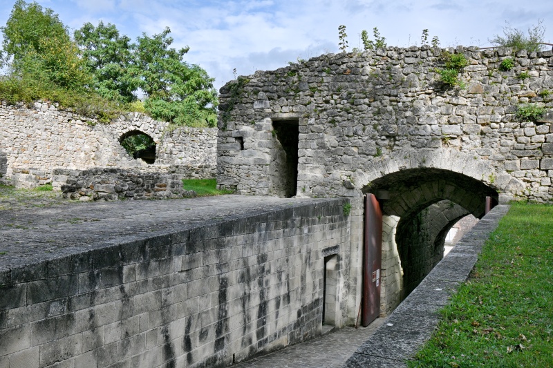 Jak už jsem psala, z hradu toho moc nezbylo. Dnešní zříceniny jen napovídají, kde asi hrad stál, jak byl rozlehlý a částečně i to, jaká byla dispozice jednotlivých budov i místností v nich. Většina prostoru je osázena stromy a centrální plocha je obehnaná dřevěným plotem, za kterým sídlí místní sokolníci. Orli a sokoli z Château-Thierry jsou proslaveni a ve dnech, kdy je chovatelská stanice otevřena (v létě denně kromě pondělí a úterý), je o ni velký zájem. Pořádají se zde různé předváděcí akce, představení a ukázky výcviku dravců. Já jsem je, samozřejmě, tak pozdě večer už neviděla, jen zdálky trochu slyšela, ale nakonec jsem byla raději, protože jsem aspoň byla na celém hradě skoro sama.