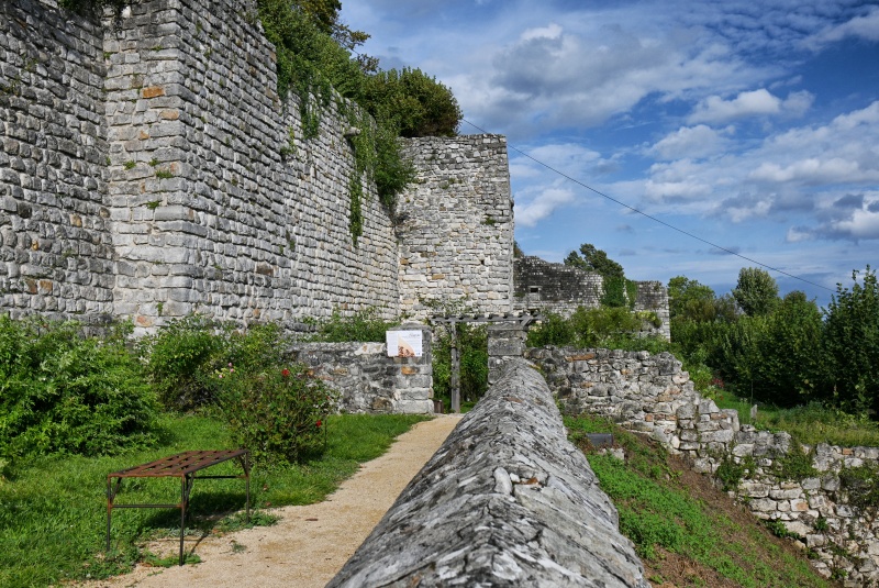Ulice nás přivede až na vrcholek, odkud se na jedné straně svažuje ke staré městské bráně Saint-Pierre, a na druhé straně stoupá ke vstupu do hradu, do kterého se prochází mezi mohutnými zdmi brány Saint-Jean. Světlý dům vlevo za lucernou patřil Charlesi de La Fontaine, synovi slavného bajkaře. Na druhé straně u městské brány leží botanická zahrada Riomet, která sice měla být ještě otevřena, když jsem k ní přišla, ale zkrátka nebyla.