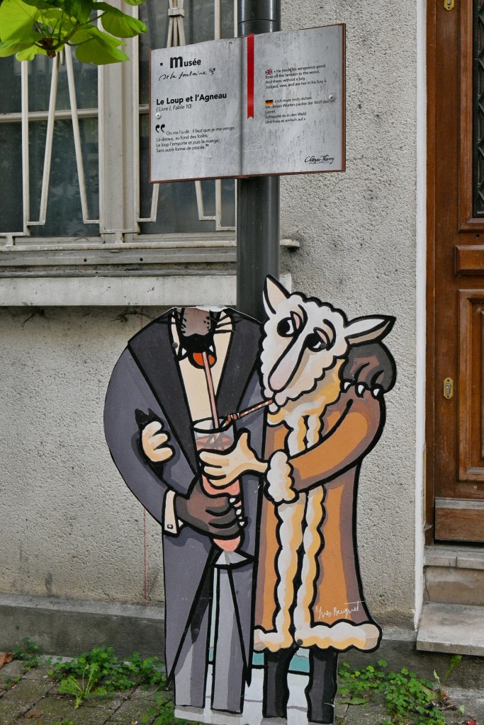 Grande rue je hlavní obchodní ulicí starého města. Kromě spousty obchodů a kaváren a restaurací tady stojí u řada sloupů, připomínajících La Fontanovy bajky – s postavičkami a s obsahem těch nejznámějších. Ulice končí na křižovatce a dál pokračuje jako rue de La Fontaine. Vede rovnou k Musée Jean de La Fontaine. Hned vedle něj pak stojí bývalý klášter minoritů – Menších bratrů Františkánů, ve kterém je dnes městská knihovna (taky už byla zavřená, ale i zvenčí vypadal areál moc pěkně).