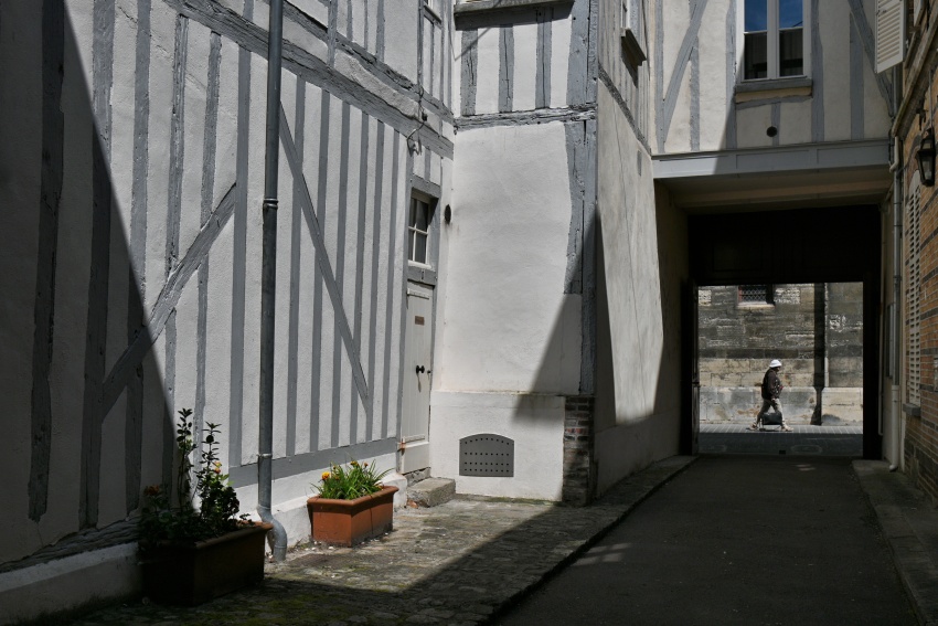 Dalším domem, který stojí za zhlédnutí, je stavba ze 16. století v rue Jean Coussin. Kromě pozoruhodné hrázděné fasády má i hezké točité schodiště a roztomilý dvorek – ten je vidět z rovnoběžné rue Jossey. Dům slouží k příležitostným výstavám, takže pokud budete chytřejší než já a přijedete jindy, než v pondělí, můžete si ho prohlédnout i uvnitř.