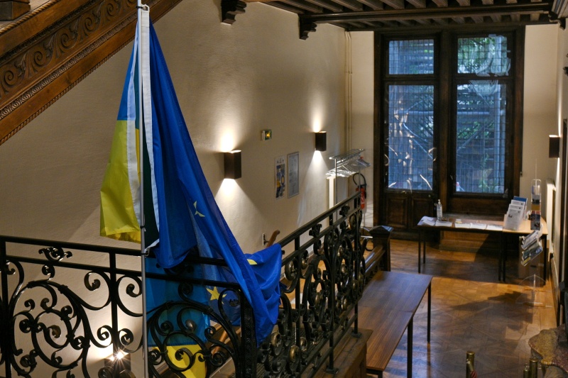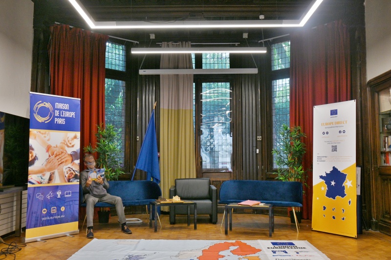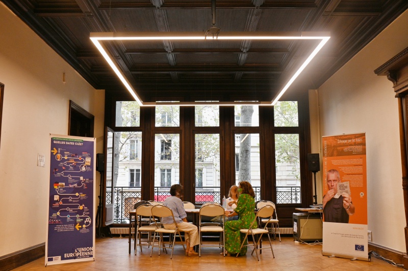 Společenské prostory jsou v podstatě prázdné a když odhlédneme od výhledu na avenue de Villiers nebo na opačnou stranu do zarostlé zahrady, i nezajímavé. Zaplňují se podle jednotlivých akcí a aktivit, ať už samotného Evropského domu, nebo v případech, kdy organizace svoje prostory pronajímá pro veřejné i soukromé akce.