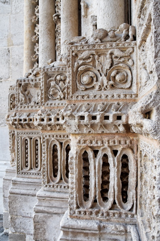 Zbytky kostela Saint-Vincent, rozmístěné po městě
