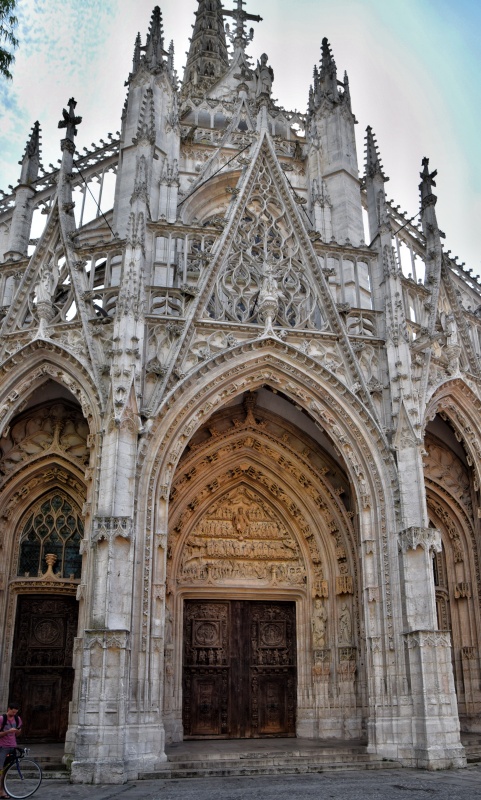 Další cennou historickou památkou Rouenu je katedrála Notre-Dame, ke které míří v historickém jádru všechny ulice a která je díky své věži viditelná už z daleka. Je to jeden z nejvýznamnějších gotických chrámů v celé Evropě. Její stavba začala už v roce 1030 na základech románské baziliky, přičemž do gotického stylu byla přestavěna ve 13. století. Dokončena byla až v 16. století, takže v jejích různých částech můžeme vidět vývoj gotické architektury od rané gotiky až po pozdní plaménkový styl.