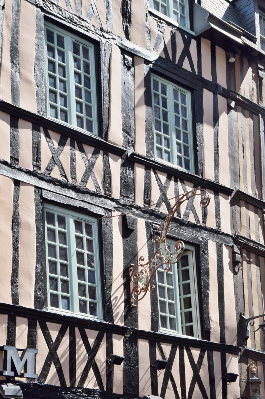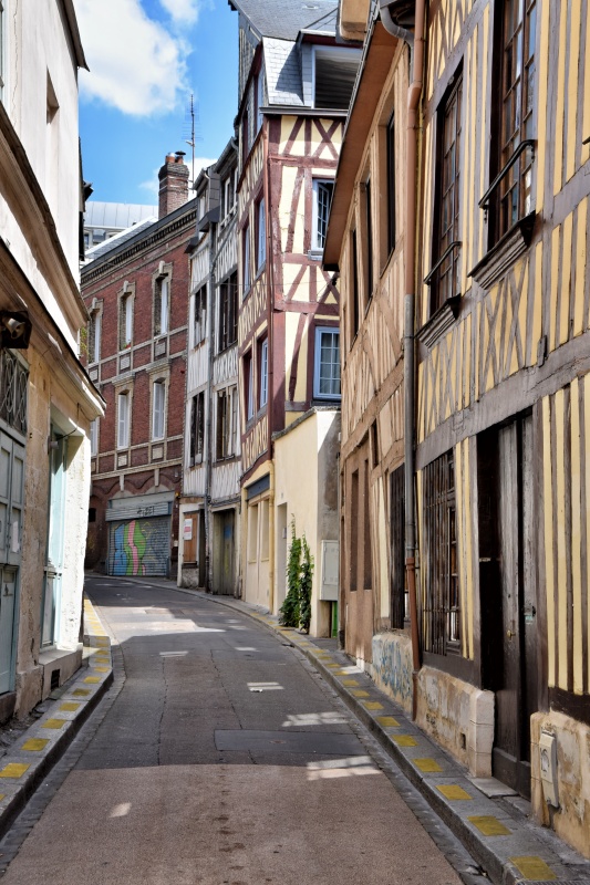 Jako hlavní město Normandie byl Rouen byl ve středověku centrem obchodních cest. Součástí Francouzského království se stal až v roce 1204, kdy ho získal král Philippe-Auguste. Význam města vzrostl během 14. a 15. století, kdy sloužil jako centrum pro obchod s textilem. Velké množství obchodníků, kteří se zde soustředili, vedl k rozvoji a rozkvětu městské výstavby. Ve starém městě dodnes můžeme vidět velké množství hrázděných měšťanských a kupeckých domů, z nichž některé pocházejí až z 15. a 16. století. Jejich architektonický styl, typický pro Normandii a severní Francii vůbec, spočívá v kombinaci dřevěné konstrukce a výplní z kamene, hlíny nebo cihel, přičemž hlavním rysem těchto vysokých a úzkých domů jsou odkryté dřevěné trámy, často provedené v pestrých barvách.