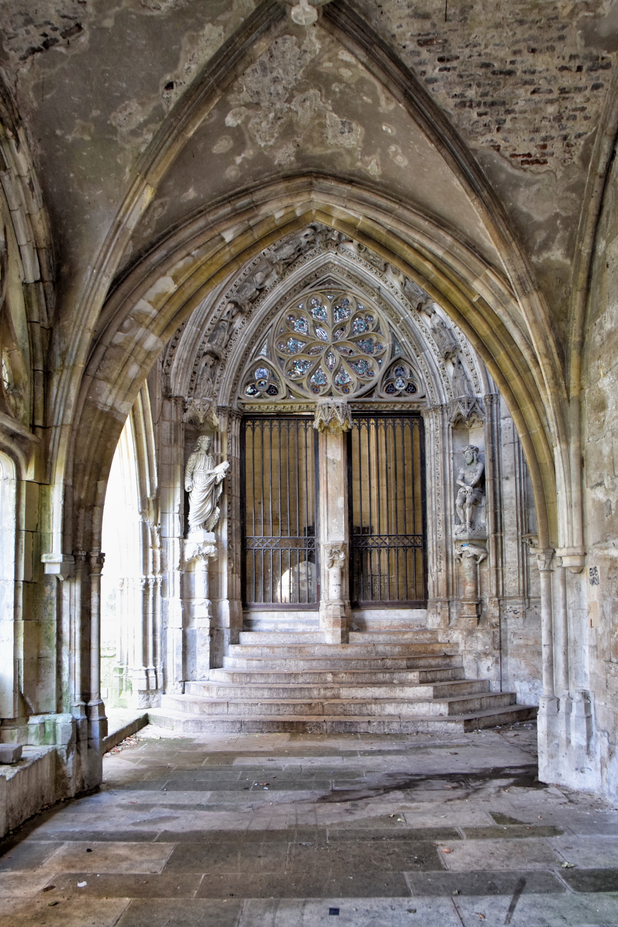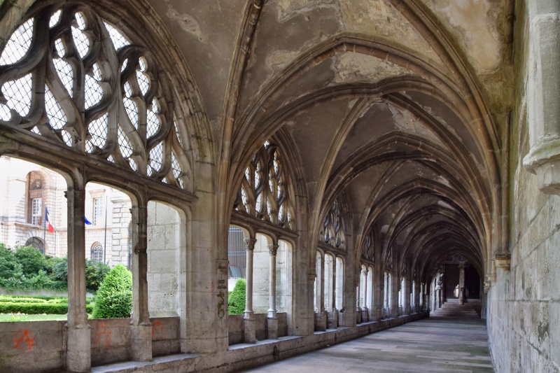 Původně měl klášter rajský dvůr, typický pro klášterní komplexy, ale dnes však jeho velká část chybí. Byla amputována společně se všemi budovami opatství na začátku 19. století, kdy po Francouzské revoluci bylo rozhodnuto, že v těsné blízkosti kláštera bude stát nová městská radnice. Zachovaný malý zbytek křížové chodby dnes napovídá, jak musel být klášterní komplex rozlehlý a krásný.