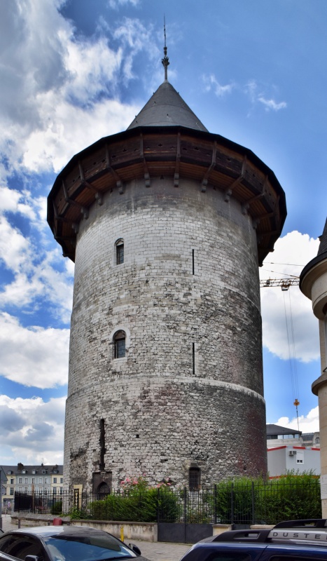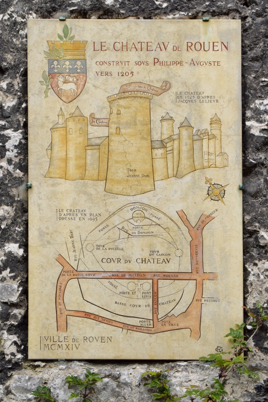 Poslední věcí, o které se chci dnes zmínit, bude tou první, kterou uvidíte, když vystoupíte z vlaku. Přímo naproti nádraží stojí poslední pozůstatek kdysi mocného a mohutného rouenského hradu. Hrad, který postavil na začátku 13. století král Philippe-Auguste, sloužil více než čtyři sta let postupně různým vládcům Normandie, než byl na konci 16. století zbořen, ovšem s výjimkou svého donjonu. Válcová věž se zachovala dodnes díky tomu, že je památkou na to, že právě tady byla před svou smrtí vězněna Johanka z Arku.