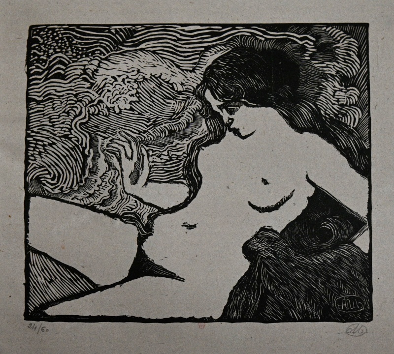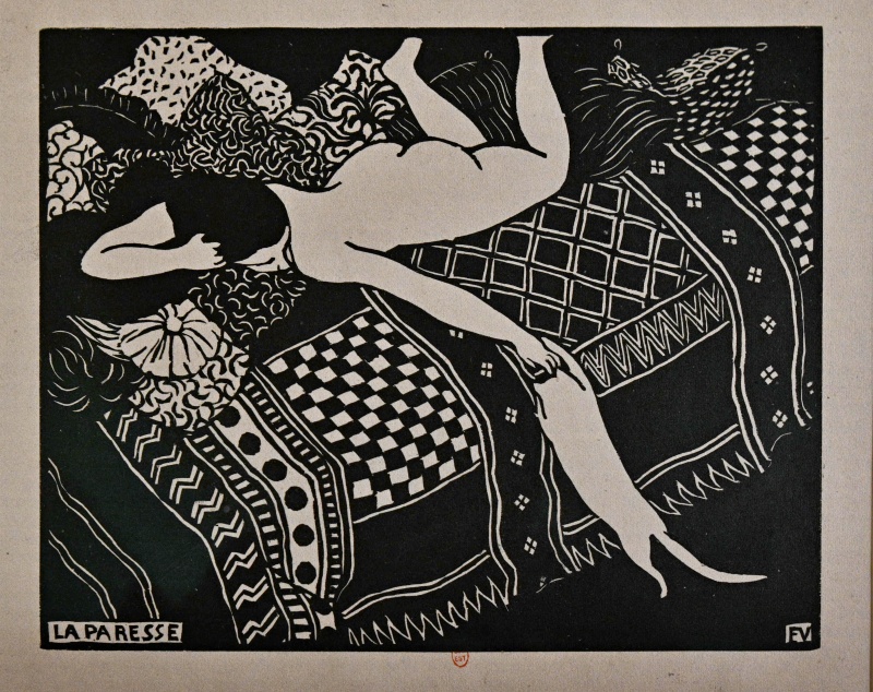 Vlevo Félix Vallotton, dřevořez, 1896, vpravo Aristide Maillol, dřevořez, 1898