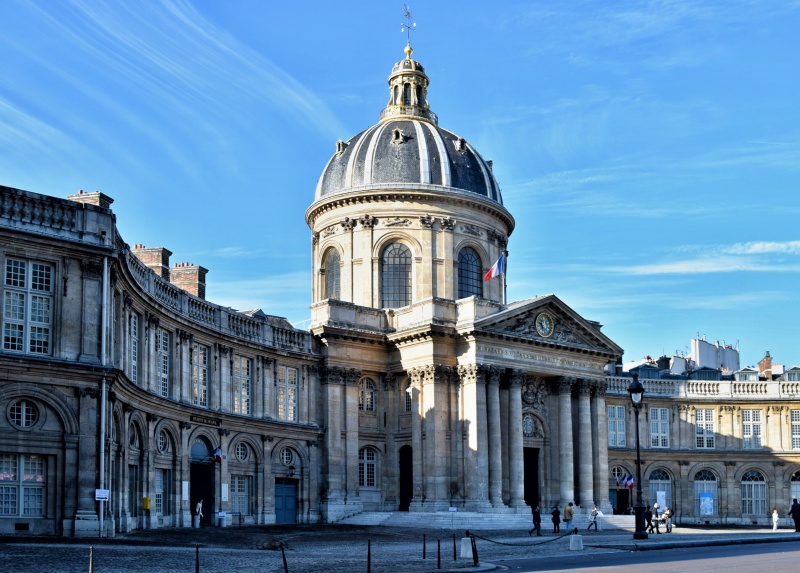 Všichni známe od vidění doširoka roztažená symetrická křídla Francouzského institutu, nad jehož centrální částí se uprostřed klene výrazná kupole. Při pohledu od Pont des Arts působí budova mimořádně harmonicky a vytváří dojem elegance i důstojnosti – přesně takový, jaký byste od sídla francouzských akademií očekávali.