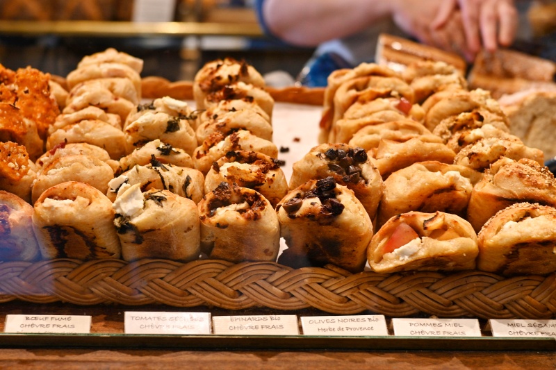Specialitami podniku jsou čokoládovo-pistáciový šnek, jablečný chausson – čerstvý jablečný koláč, nadýchaný flan, brioška s chutí pomerančových květů a slavný chléb „pain des amis“, který je vynálezem majitele, který na něj má ochrannou známku. Já tady miluju úplně všechno – i obyčejný (neobyčejný) croissant, pain au chocolat, a hlavně malé briošky, plněné nejrůznějšími náplněmi. Nejradši mám ty s kozím sýrem, jablky a medem.