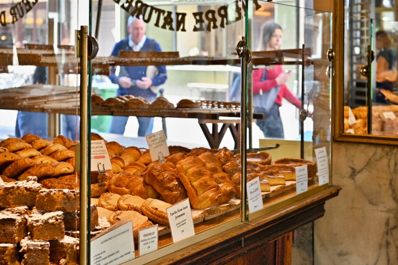Nabídka je sice trochu omezená – dorty byste tady hledali zbytečně, protože se pekárna specializuje jen na chléb a jemné pečivo, tzv. viennoiserie, na které si dává záležet – všechny výrobky vznikají na místě z nejkvalitnějších surovin, často z bio pěstování či přímo od farmářů, a s respektem k tradičním postupům a dlouhým fermentacím. Nápis na výloze prozrazuje, že zatímco průmyslově vyráběný croissant vznikne za dvě hodiny, tady zabere zadělávání těsta, jeho překládání, kynutí a zpracování třicet hodin. A na chuti je to opravdu znát.