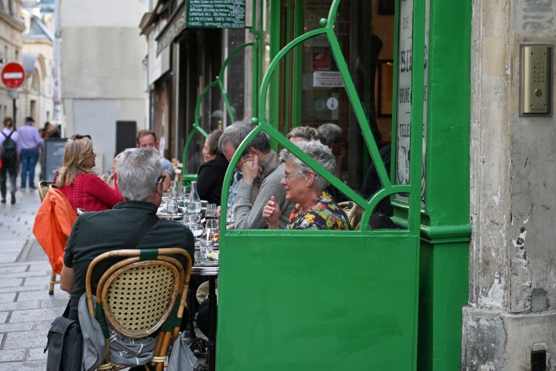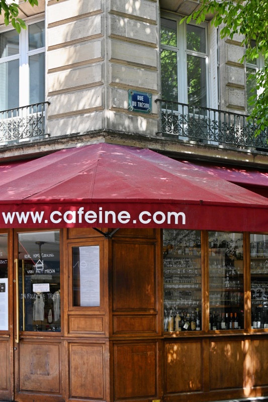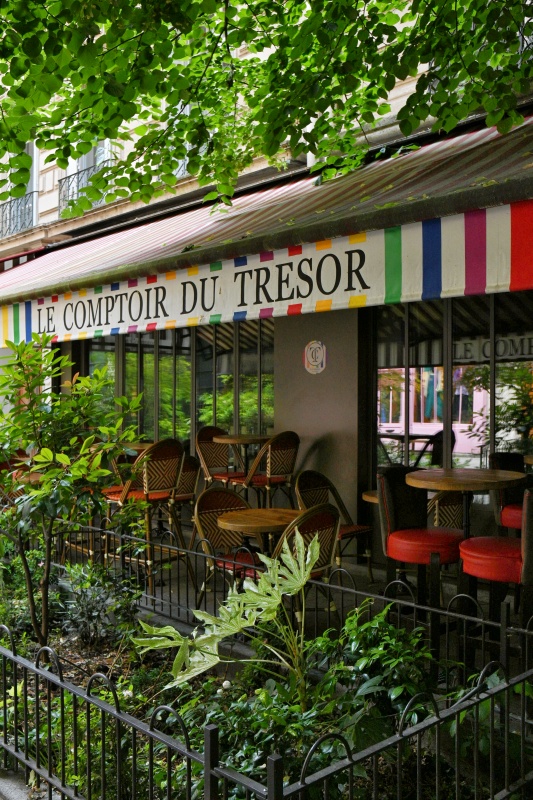 V rue du Trésor sice leží několik bister a kaváren, ze kterých stojí za zdůraznění hlavně Les Philosophes hned na rohu uličky, ale přesto vás chci upozornit ještě na další dvě. Hned za rohem v rue Vieille du Temple leží naproti sobě dva autentické podniky, které pamatují Paříž dávných let. Ta se zelenými výlohami se jmenuje Au petit fer à cheval. Důvod názvu je jasný na první pohled – je to kvůli jeho barovému pultu ve tvaru podkovy. Historické bistro má kromě starého zinkového baru i další zachovalé původní vybavení – mozaikovou podlahu, barové židle, potažené červenou koženkou, secesní lustr, nádražní hodiny ve výšce nad pultem, telefon z 50. let a baterii lahví s nejrůznějším alkoholem. Podnik pro sotva dvacet lidí nabízí jednoduchou a typickou francouzskou kuchyni, od cibulačky až po konfitovanou kachnu.